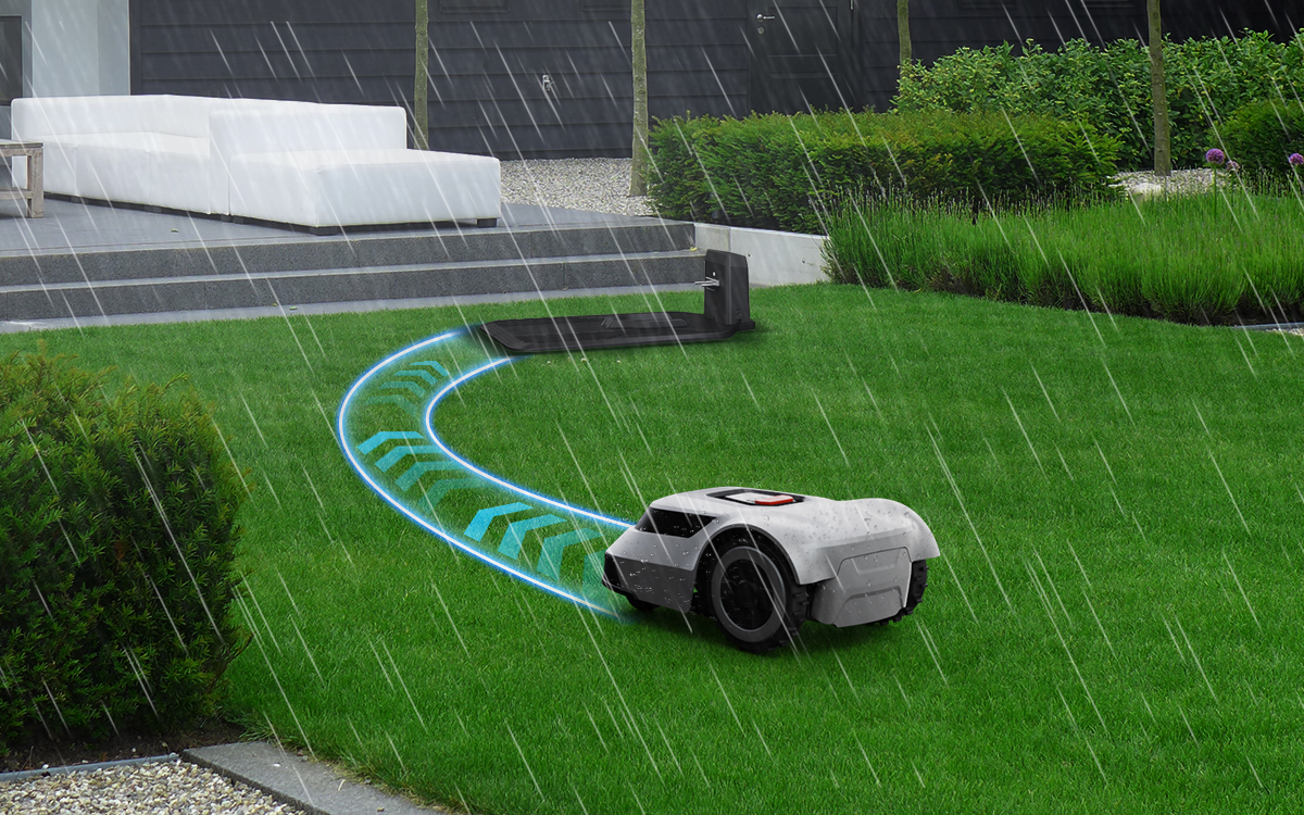 There is a rain sensor on top of the Pion machine. In bad weather, it will automatically stop mowing and return to the charging station to charge. When the weather clears up, it will automatically continue the last mowing route.