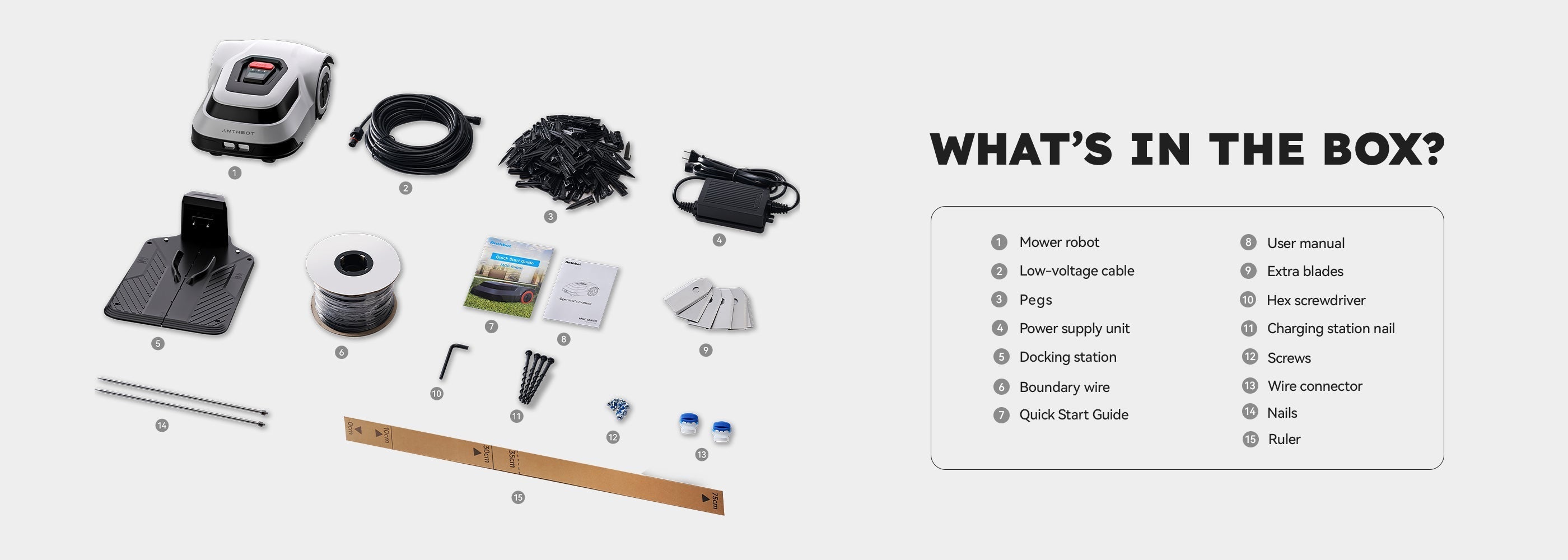 - Pre-purchase reminder: The maximum length of the perimeter is 180m, please complete the wiring within the 180m perimeter (The maximum fenced area of uneven grass is about 600㎡/0.15 acre). If you need to expand a larger area, you can purchase an additional charging station + boundary wire